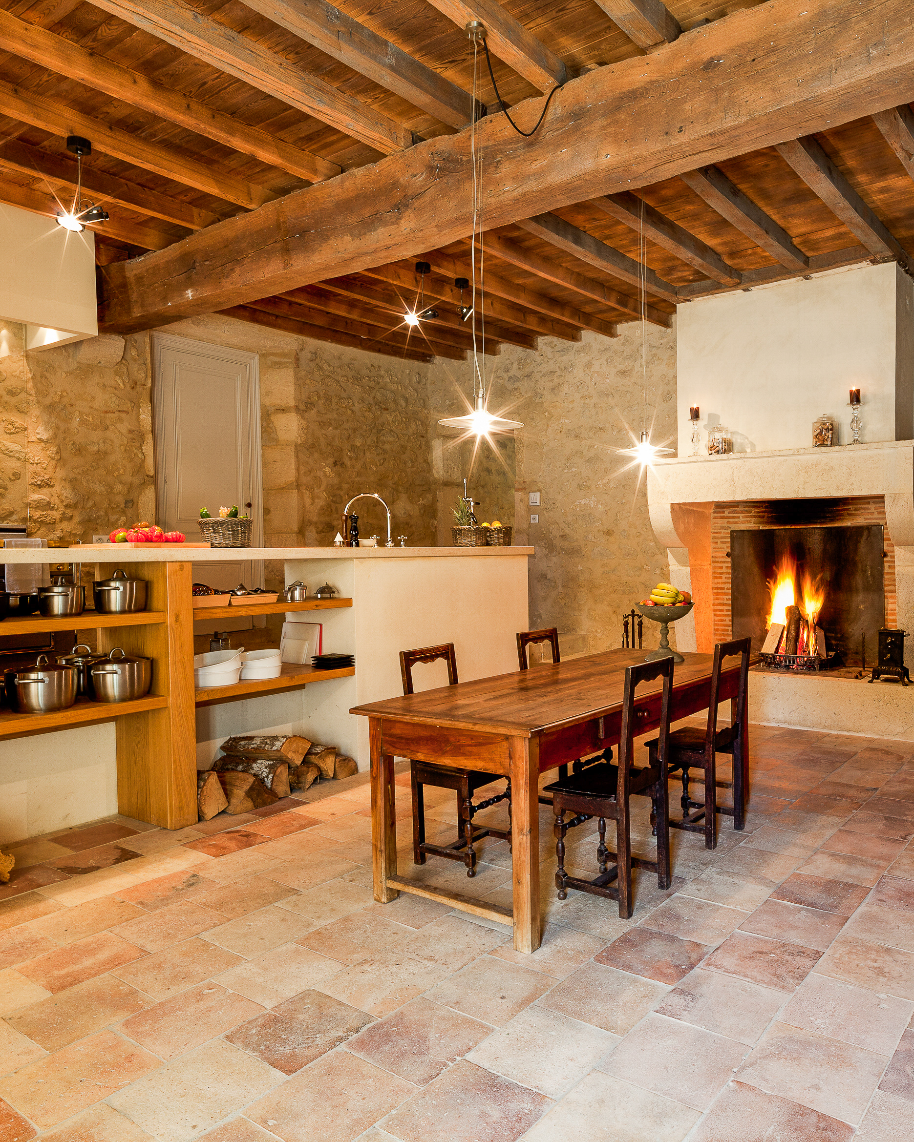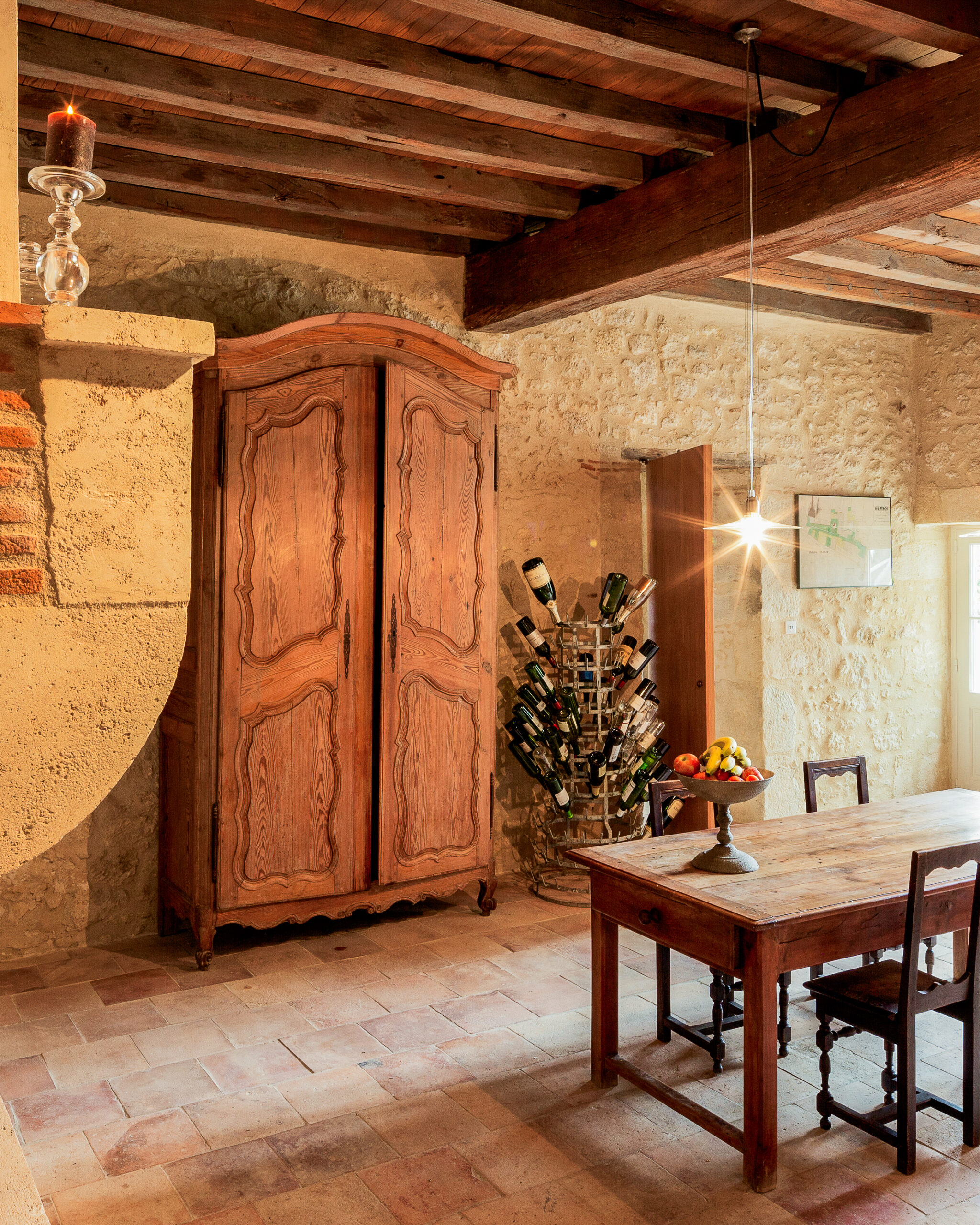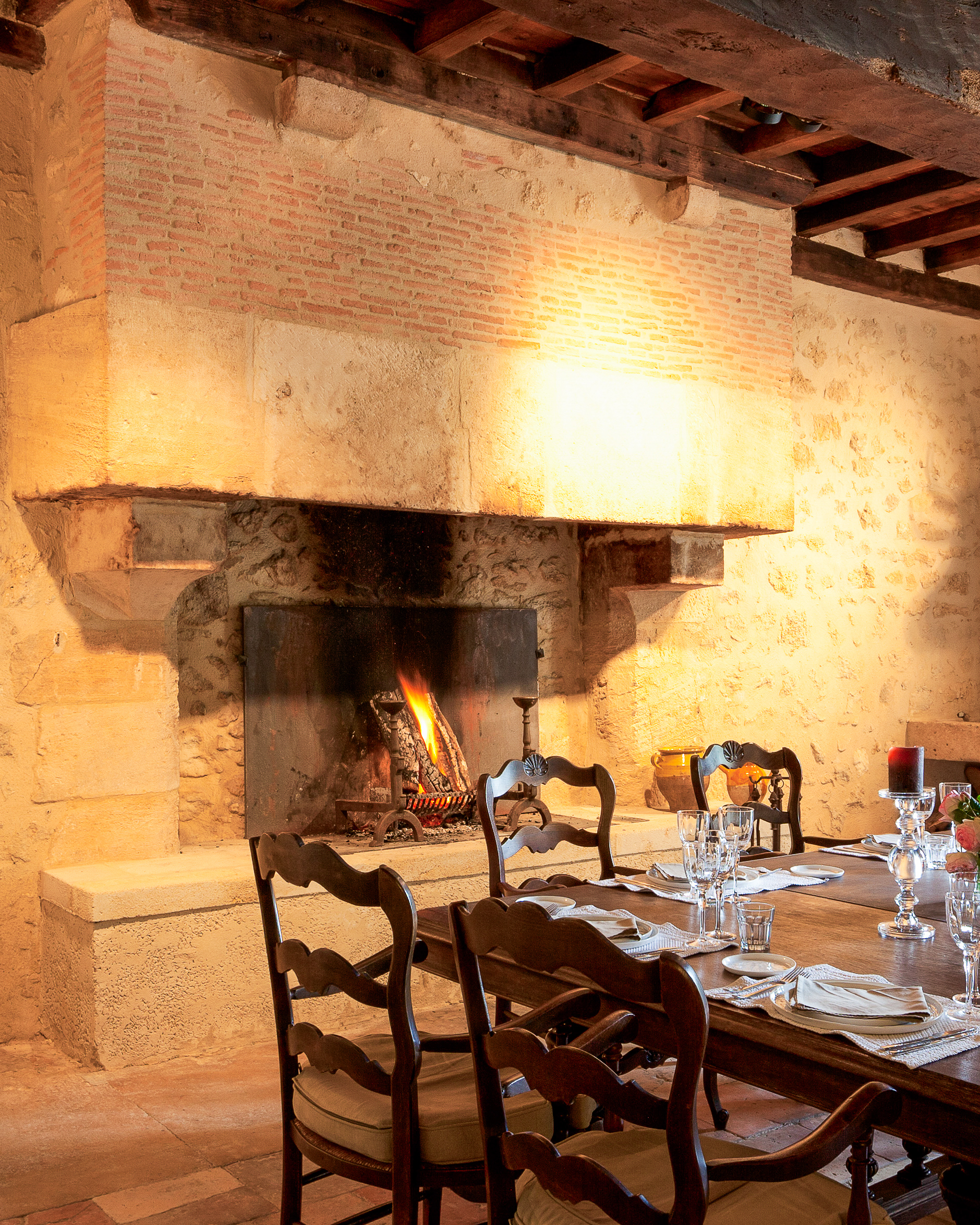 - For a more intimate and romantic setting, the elegant dining room with its original fireplace invites you to savor long, cozy evenings filled with conversation and fine Bordeaux wines.