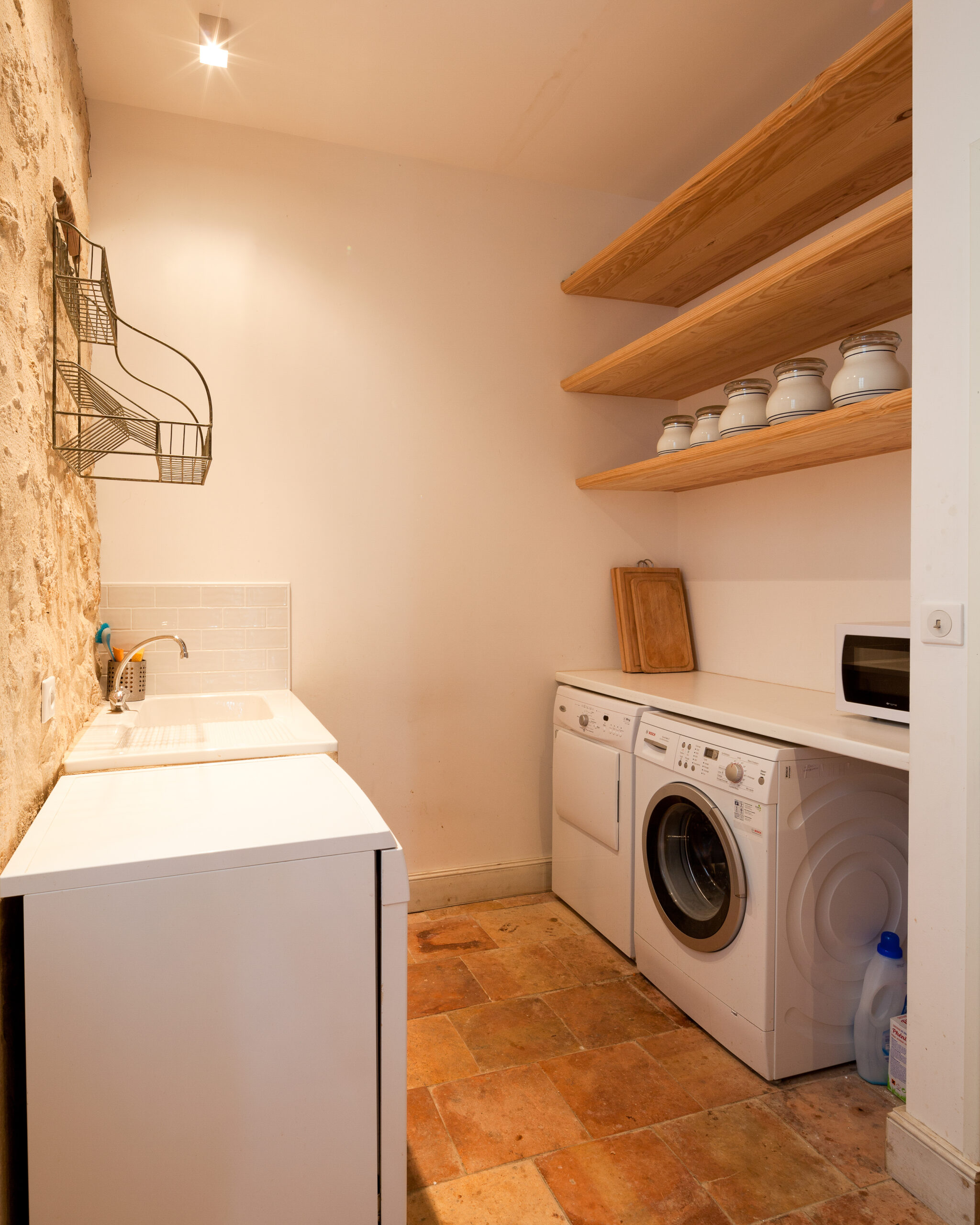 Designed for both functionality and pleasure, the fully equipped diner kitchen is a true heart of the home. Complete with a gas cooker and oven by E. Caumartin, a large refrigerator, dishwasher, washing machine, dryer, and microwave, it provides all the modern conveniences needed to prepare delicious meals with local ingredients gathered from the region’s picturesque markets.