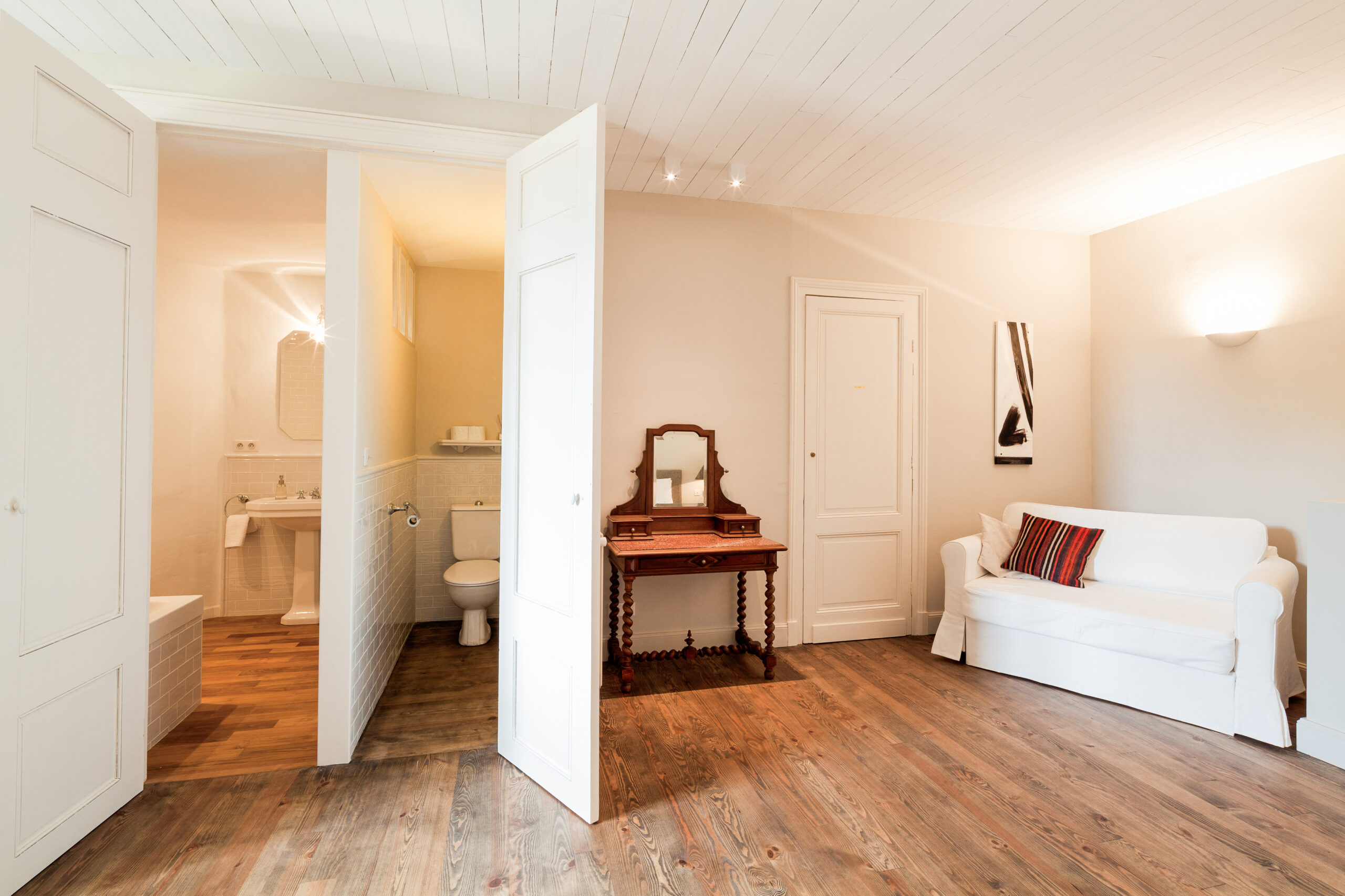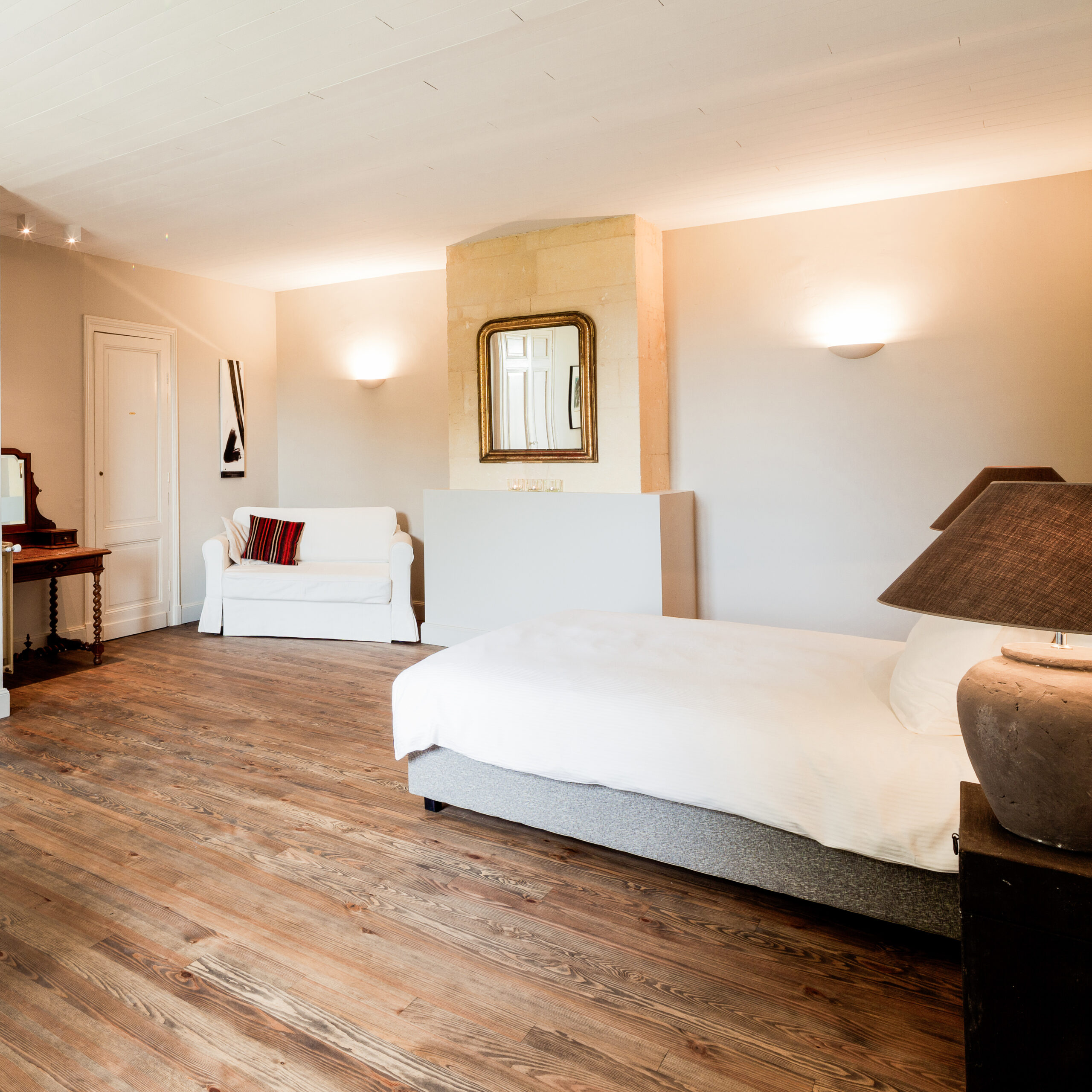 Whether you are waking to the golden light of morning or watching the sun set over the vineyards, the White Room offers an intimate connection to the natural beauty that defines Château Le Vert.